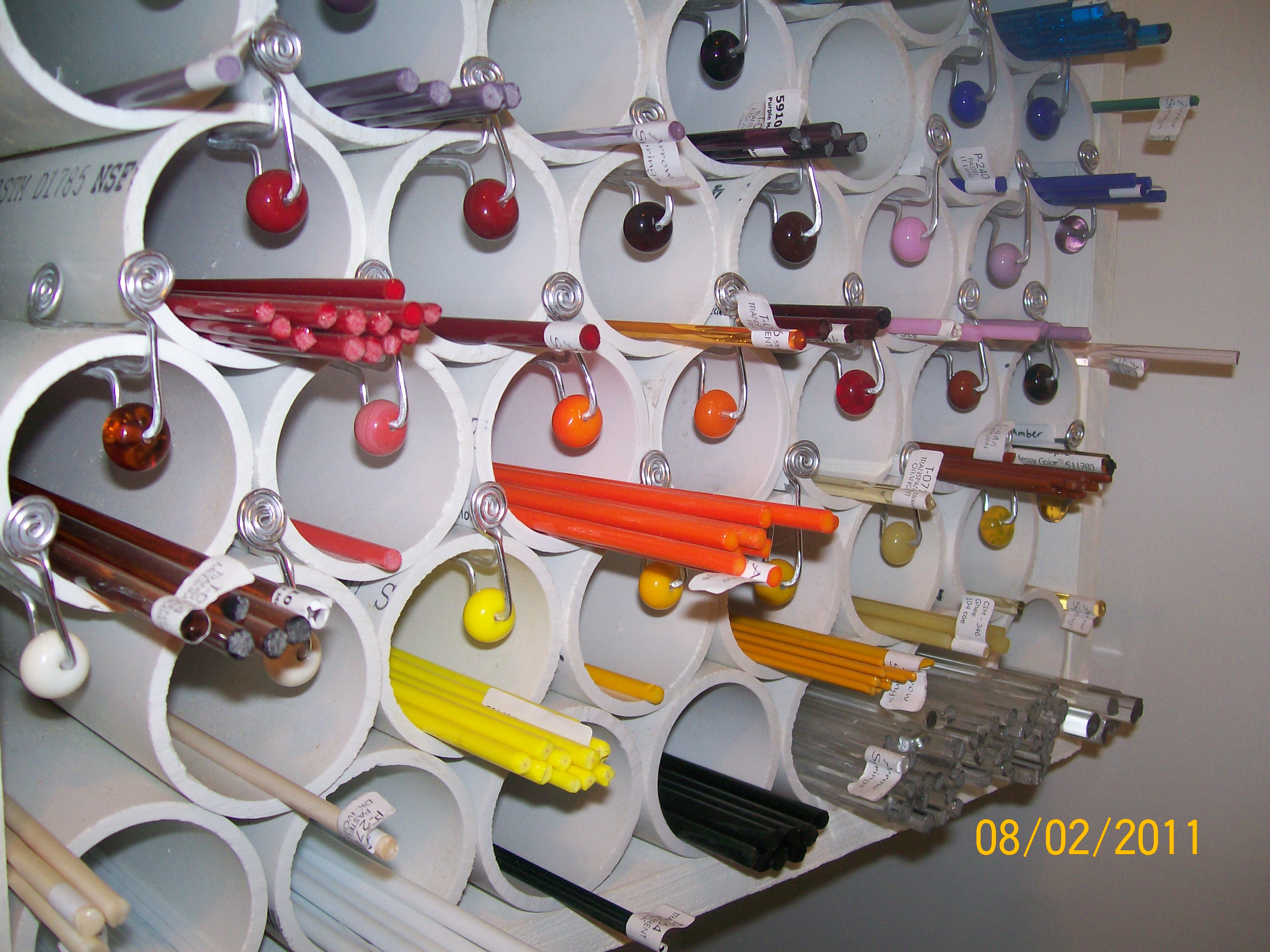 Currently I’m working with Effetre 104 COE glass. I have ordered some Messy Colors (CiM) 104 COE rods but they haven”t arrived just yet. I love the extended range of colors provided by CiM; they have more pinks, reds and blues. I don’t want to get too stuck in a rut. I want to have an expanded collection to choose from, so if you know of great glass to use, please send me an email.